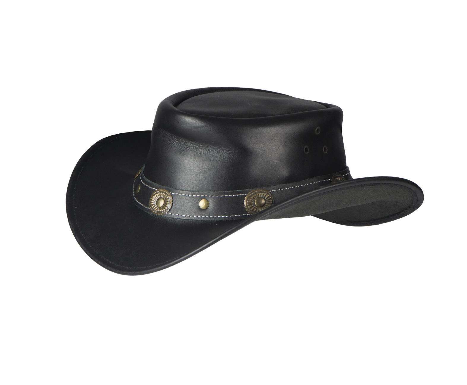 Countryhoed met kinband en ventilatie aan de zijkant.